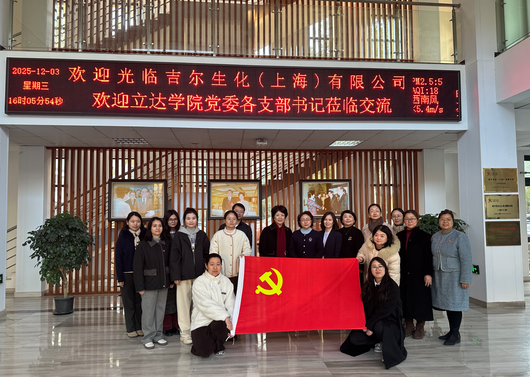 2025年12月3日下午,上海立达学院党委书记李艳玲率学院党委及二级学院各支部书记一行,莅临吉尔生化开展党建交流共建。吉尔生化总经理、留学生支部书记周敏,及公司党支部书记姜婷热情接待并致以诚挚欢迎。交流座谈会上,周敏结合企业实际,介绍了吉尔生化的发展历程、核心业务及党建特色做法、实践成效。会后,在企业负责人陪同下,立达学院一行参观了紫竹园区展示厅、吉尔生化实验室及合作基因科技公司。此次活动为校企合作搭建了桥梁。活动后,双方一致表示,将以此次交流为契机,深化全方位校企合作,实现资源共享、优势互补;以党建提质增效为抓手,强化党建引领发展作用,为双方高质量发展凝聚合力。